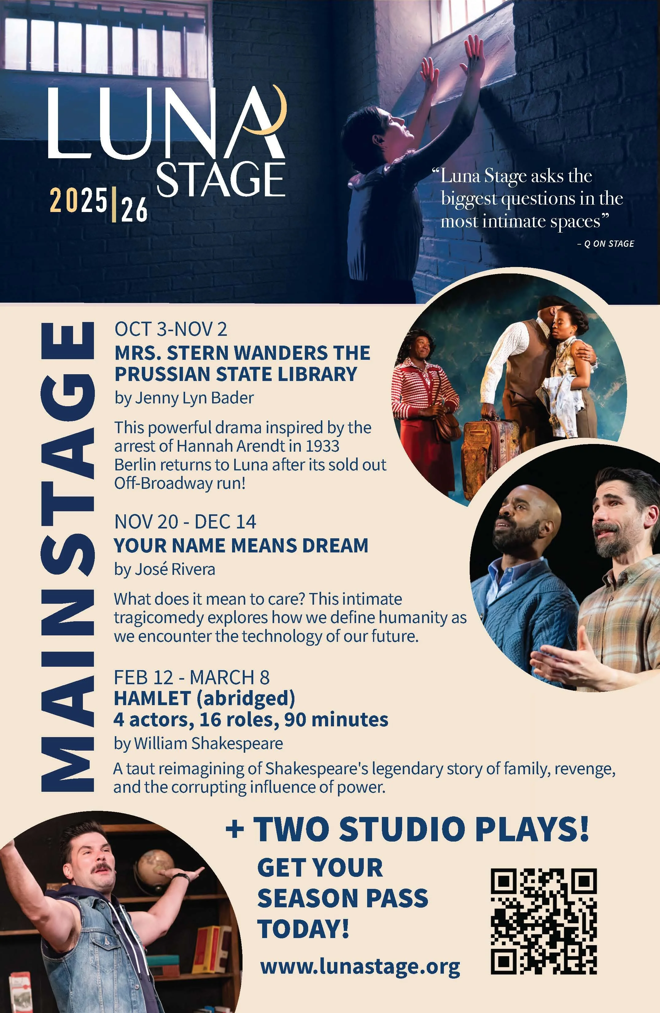 Purchase a 2025-2026 season pass to get a ticket for all FIVE Luna Stage shows this year!