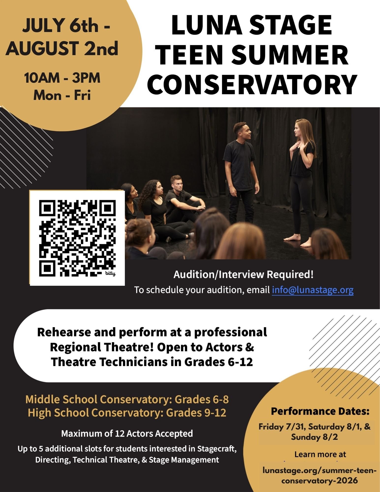 Luna’s Teen Conservatory is a dynamic four-week theatrical immersion for artists ready to deepen their craft and find their voice.